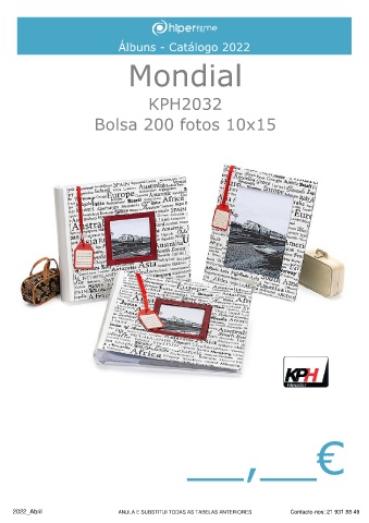 Álbuns - Catálogo 2022 Mondial KPH2032 Bolsa 200 fotos 10x15 __,__€ 2022_Abril ANULA E SUBSTITUI TODAS AS TABELAS ANTERIORES Contacte-nos: 21 931 88 49