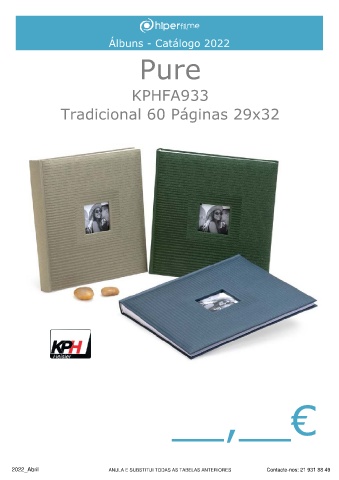 Álbuns - Catálogo 2022 Pure KPHFA933 Tradicional 60 Páginas 29x32 __,__€ 2022_Abril ANULA E SUBSTITUI TODAS AS TABELAS ANTERIORES Contacte-nos: 21 931 88 49