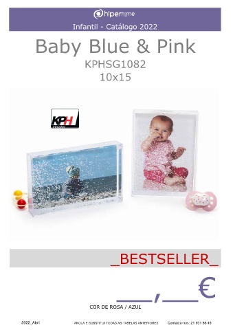 Infantil - Catálogo 2022 Baby Blue & Pink KPHSG1082 10x15 _BESTSELLER_ __,__€ COR DE ROSA / AZUL 2022_Abril ANULA E SUBSTITUI TODAS AS TABELAS ANTERIORES Contacte-nos: 21 931 88 49
