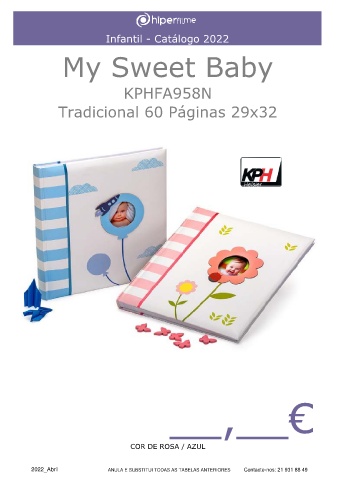 Infantil - Catálogo 2022 My Sweet Baby KPHFA958N Tradicional 60 Páginas 29x32 __,__€ COR DE ROSA / AZUL 2022_Abril ANULA E SUBSTITUI TODAS AS TABELAS ANTERIORES Contacte-nos: 21 931 88 49