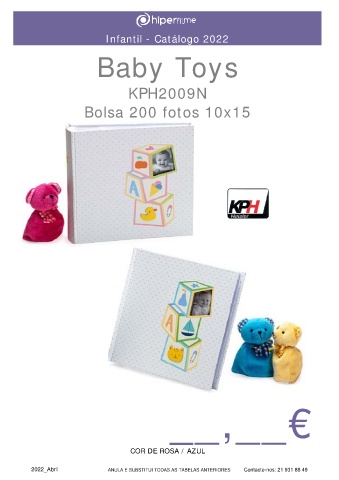 Infantil - Catálogo 2022 Baby Toys KPH2009N Bolsa 200 fotos 10x15 __,__€ COR DE ROSA / AZUL 2022_Abril ANULA E SUBSTITUI TODAS AS TABELAS ANTERIORES Contacte-nos: 21 931 88 49