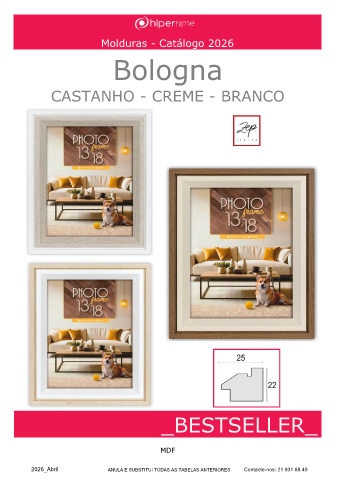 Molduras - Catálogo 2026 Lugo Bologna CASTANHO - CREME - BRANCO _BESTSELLER_ MDF 2026_Abril ANULA E SUBSTITUI TODAS AS TABELAS ANTERIORES Contacte-nos: 21 931 88 49