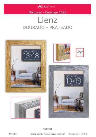 Molduras - Catálogo 2026 Lugo Lienz DOURADO - PRATEADO MADEIRA 2026_Abril ANULA E SUBSTITUI TODAS AS TABELAS ANTERIORES Contacte-nos: 21 931 88 49