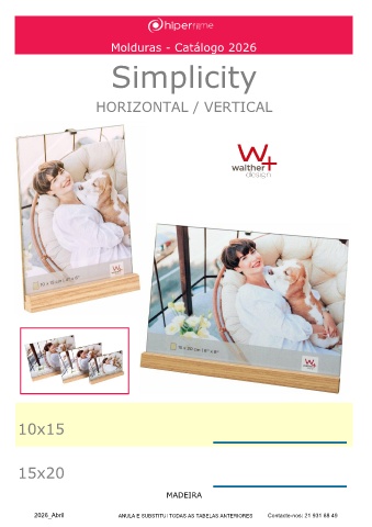 Molduras - Catálogo 2026 Lugo Simplicity HORIZONTAL / VERTICAL ______ 10x15 ______ 15x20 MADEIRA 2026_Abril ANULA E SUBSTITUI TODAS AS TABELAS ANTERIORES Contacte-nos: 21 931 88 49