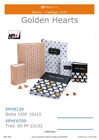 Álbuns - Catálogo 2026 Golden Hearts KPH9139 Bolsa 100F 10x15 ______ KPHFA709 Trad. 60 PP 22x32 ______ 3 MOTIVOS 2026_Abril ANULA E SUBSTITUI TODAS AS TABELAS ANTERIORES Contacte-nos: 21 931 88 49