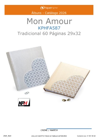 Álbuns - Catálogo 2026 Mon Amour KPHFA587 Tradicional 60 Páginas 29x32 ______ CREME / MARFIM 2026_Abril ANULA E SUBSTITUI TODAS AS TABELAS ANTERIORES Contacte-nos: 21 931 88 49