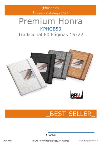 Álbuns - Catálogo 2026 Premium Honra KPHGB53 Tradicional 60 Páginas 16x22 _BEST-SELLER_ ______ 4 CORES 2026_Abril ANULA E SUBSTITUI TODAS AS TABELAS ANTERIORES Contacte-nos: 21 931 88 49