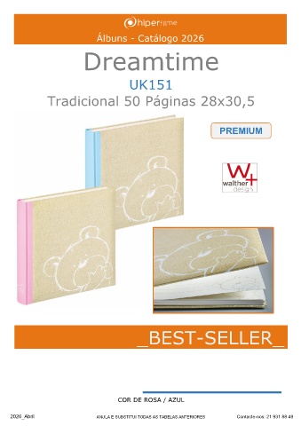 Álbuns - Catálogo 2026 Dreamtime UK151 Tradicional 50 Páginas 28x30,5 PREMIUM _BEST-SELLER_ ______ COR DE ROSA / AZUL 2026_Abril ANULA E SUBSTITUI TODAS AS TABELAS ANTERIORES Contacte-nos: 21 931 88 49