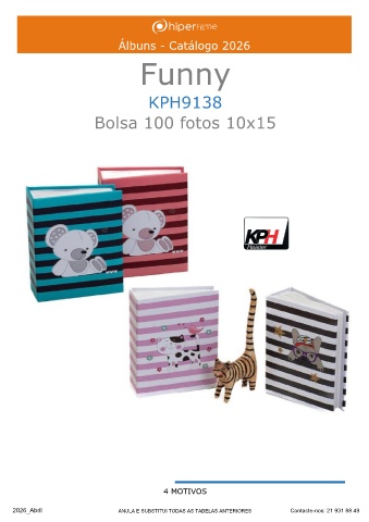 Álbuns - Catálogo 2026 Funny KPH9138 Bolsa 100 fotos 10x15 ______ 4 MOTIVOS 2026_Abril ANULA E SUBSTITUI TODAS AS TABELAS ANTERIORES Contacte-nos: 21 931 88 49