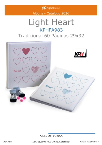 Álbuns - Catálogo 2026 Light Heart KPHFA983 Tradicional 60 Páginas 29x32 ______ AZUL / COR DE ROSA 2026_Abril ANULA E SUBSTITUI TODAS AS TABELAS ANTERIORES Contacte-nos: 21 931 88 49