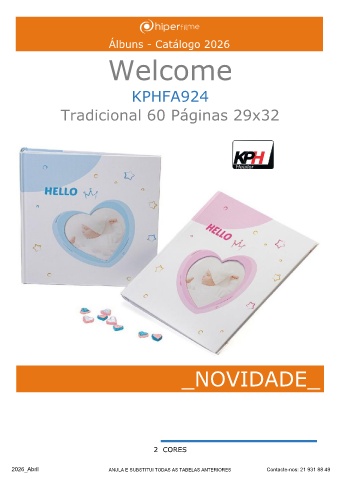 Álbuns - Catálogo 2026 Welcome KPHFA924 Tradicional 60 Páginas 29x32 _NOVIDADE_ ______ 2 CORES 2026_Abril ANULA E SUBSTITUI TODAS AS TABELAS ANTERIORES Contacte-nos: 21 931 88 49