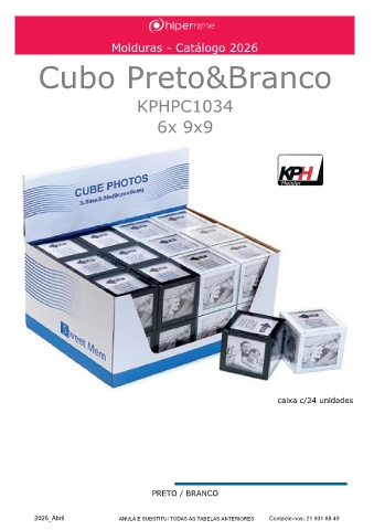 Molduras - Catálogo 2026 Cubo Preto&Branco Lugo KPHPC1034 6x 9x9 caixa c/24 unidades ______ PRETO / BRANCO 2026_Abril ANULA E SUBSTITUI TODAS AS TABELAS ANTERIORES Contacte-nos: 21 931 88 49
