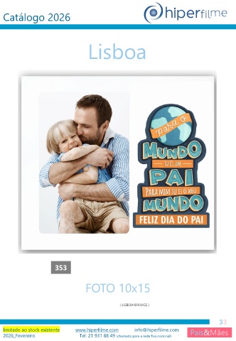 Catálogo 2026 Lisboa 353 FOTO 10x15 ( LISBOA1015VGS ) 33 limitado ao stock existente www.hiperfilme.com info@hiperfilme.com Pais&Mães 2026_Fevereiro Tel: 21 931 88 49 (chamada para a rede fixa nacional)