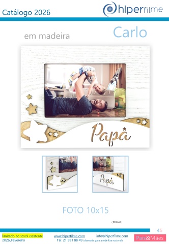 Catálogo 2026 Carlo em madeira FOTO 10x15 ( FE8446 ) 45 limitado ao stock existente www.hiperfilme.com info@hiperfilme.com Pais&Mães 2026_Fevereiro Tel: 21 931 88 49 (chamada para a rede fixa nacional)