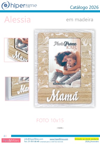 Catálogo 2026 Alessia em madeira FOTO 10x15 ( FE8846 ) 46 Pais&Mães info@hiperfilme.com www.hiperfilme.com limitado ao stock existente Tel: 21 931 88 49 (chamada para a rede fixa nacional) 2026_Fevereiro