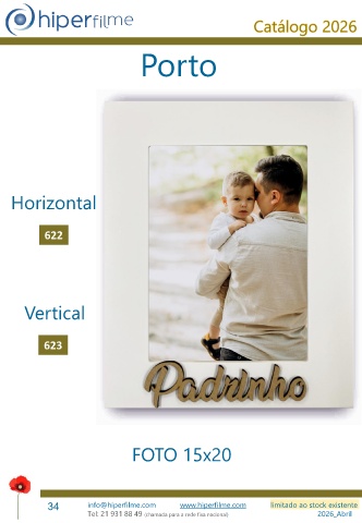 Catálogo 2026 Porto Horizontal 622 Vertical 623 FOTO 15x20 34 info@hiperfilme.com www.hiperfilme.com limitado ao stock existente Tel: 21 931 88 49 (chamada para a rede fixa nacional) 2026_Abril