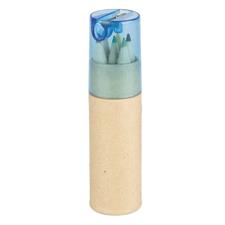 Conjunto de 6 lápis de cor em tubo para personalizar. Seis lápis de cores diferentes, com corpo em cor de madeira clara.