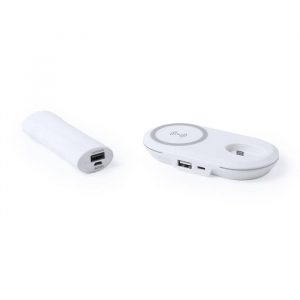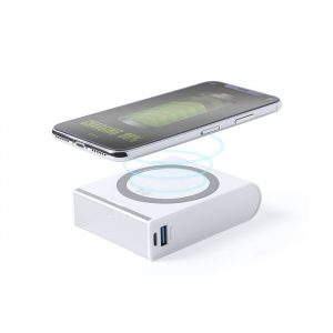 Powerbank com potência de 8000 mAh. Possuí um suporte para segurar o seu telemóvel e ainda um carregamento via wireless.