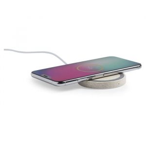Elegante carregador em cortiça natural. Equipado com tecnologia de carregamento por wireless. Cabo Incluído.