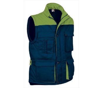 Colete com tecido exterior em 65% poliéster e 35% algodão tecido sarja 200 grs/m2. Acolchoado em 100% poliéster de 220 grs/m2.