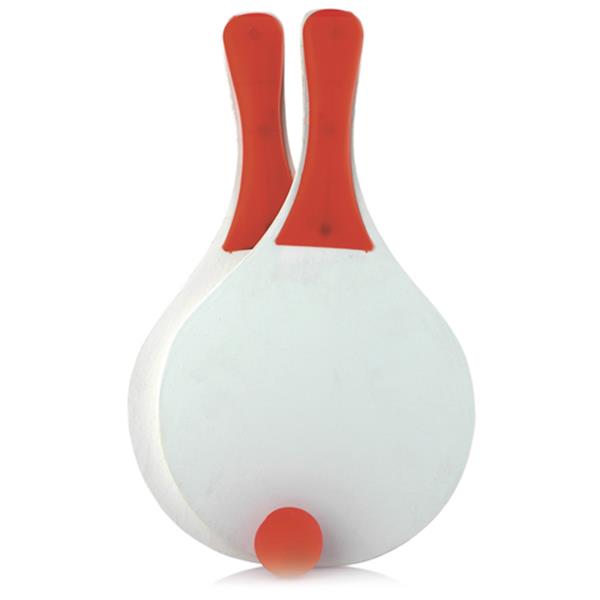 Conjunto de 2 raquetes de praia com bola em saco de rede para personalizar. Nada melhor para passar o tempo do que um jogo.