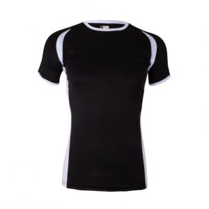 T-shirt técnica bicolor manga curta para personalizar. Painéis laterais, mangas e gola em cor contraste. Etiqueta removível.