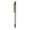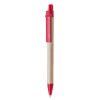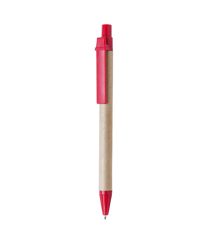 Esferográfica com corpo em cartão reciclado, clip em madeira clara e topo e ponta em plástico colorido. Também disponível em diferentes cores.
