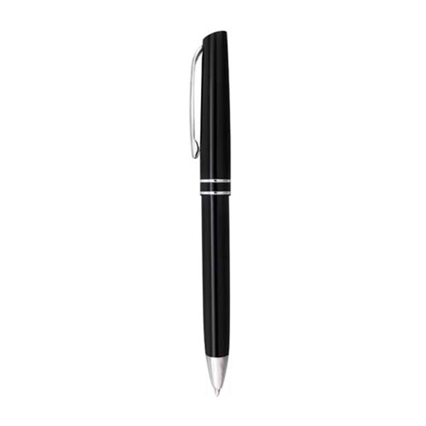 Esferográfica Metal com dois anéis .Escrita a Preto com sistema Pulsar , Clip e detalhes Prateados . Modelo Clássico que nunca passa de moda .