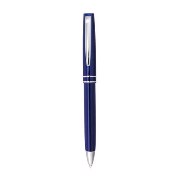 Esferográfica de metal para personalizar. Escrita azul, sistema pulsar. Esferográfica com detalhes prateados. Disponível em várias cores.