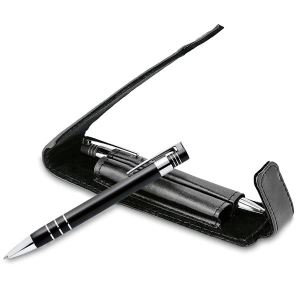 Conjunto de esferográfica e lapiseira de alumínio e estojo para personalizar. Disponível em duas cores.