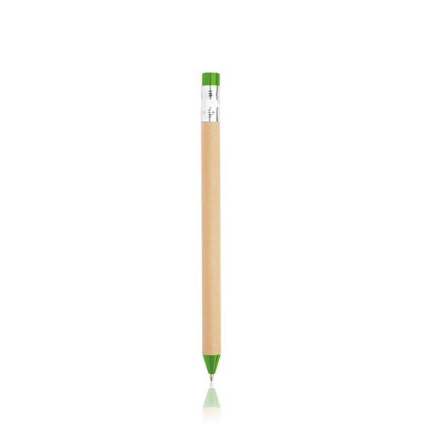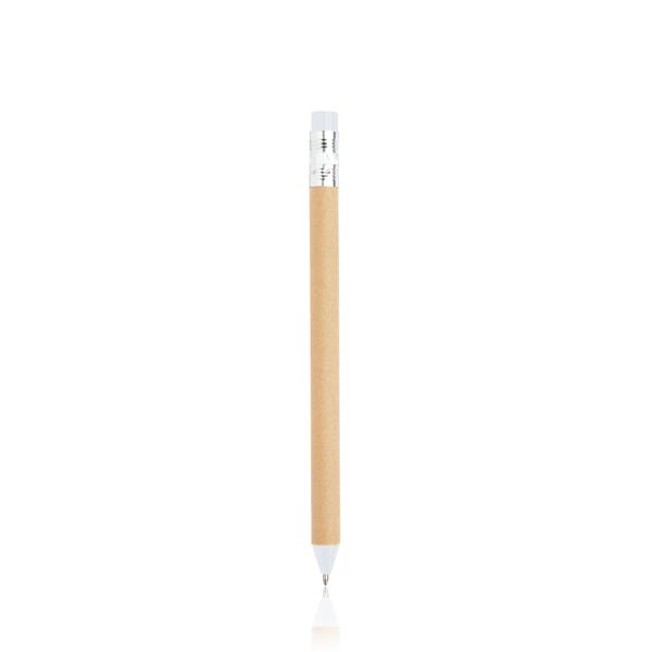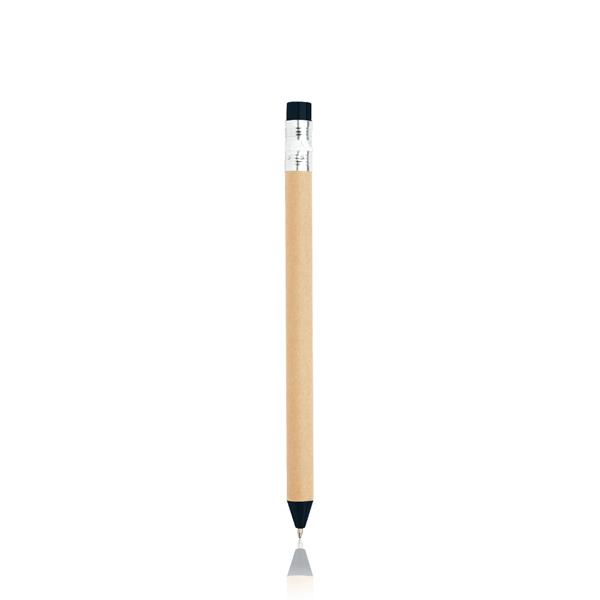 Esferográfica em cartão reciclado em formato de lápis para ser personalizada de tinta preta .Também disponível em outras cores.