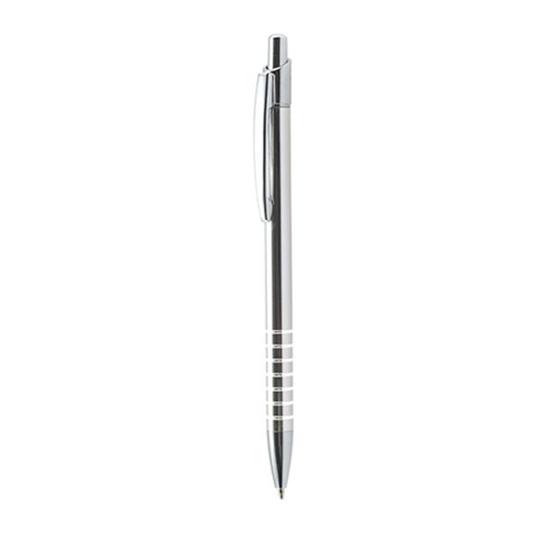 Esferográfica de metal para personalizar. Escrita preta, sistema pulsar. Clip e detalhes prateados. Disponível em várias cores.