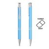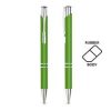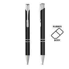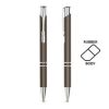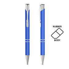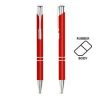 Esferográfica em alumínio, corpo com toque de borracha com 2 anéis. Escrita preta, sistema pulsar. Disponívem em várias cores.