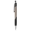 Esferográfica em alumínio, corpo com toque de borracha com 2 anéis. Escrita preta, sistema pulsar. Disponívem em várias cores.