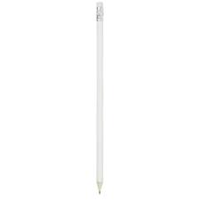 Lápis em Madeira Branco com detalhe de borracha correspondente a cor pretendida. Disponível em várias cores.