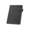 Agenda A5 em PET reciclado. Com suporte para esferográfica e elástico para fecho na mesma cor. Fornecida com bolsa de non-woven.