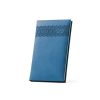 Bloco de notas A7, capa em PVC. Este bloco com 90 folhas lisas, contém uma capa rígida, em PVC, com encaixe para uma esferográfica. Esferográfica incluída. Escrita azul, sistema pulsar.