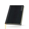 Bloco de notas com capas de toque suave com acabamento em cartão reciclado resistente. Com 60 folhas pautadas, com fecho elástico e marcadores de tecido em preto.
