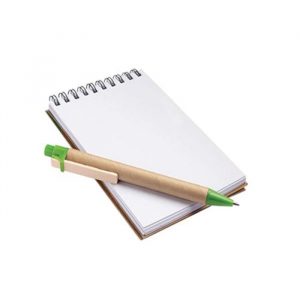Pasta em cortiça com bloco com 20 folhas incluído.