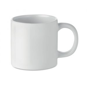 Caneca de cerâmica de capacidade de 200 ml com revestimento especial para sublimação. Embalagem individual em caixa de cartão branca.