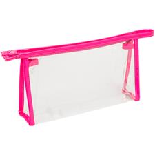 Necessaire em PVC Neoclear transparente com detalhes néon para personalizar. Com cores vibrantes e vistosas no fecho e rebordos.
