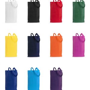 Saco em non-woven de 80g/m2, numa vasta gama de cores vivas. Com alças curtas de 35 cm reforçadas e acabamento termo selado. Resistência até 5kg de peso.