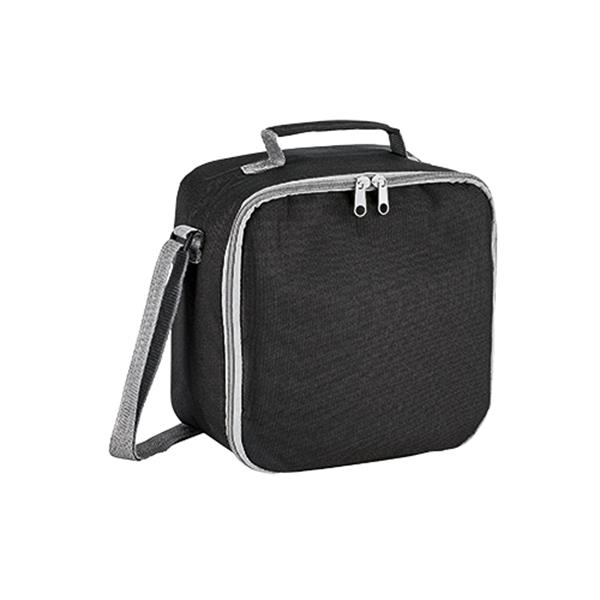 Lancheira térmica com caixas P-600D para personalizar. Disponível apenas em branco ou preto.