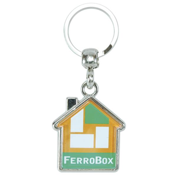 Porta-chaves MY-D em metal, com formato de casa para personalizar. 2 faces com inserção de papel e tampa em acrílico.