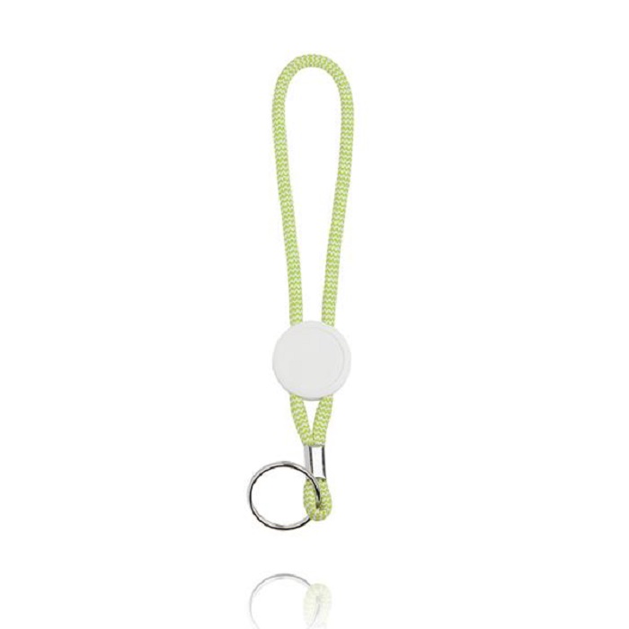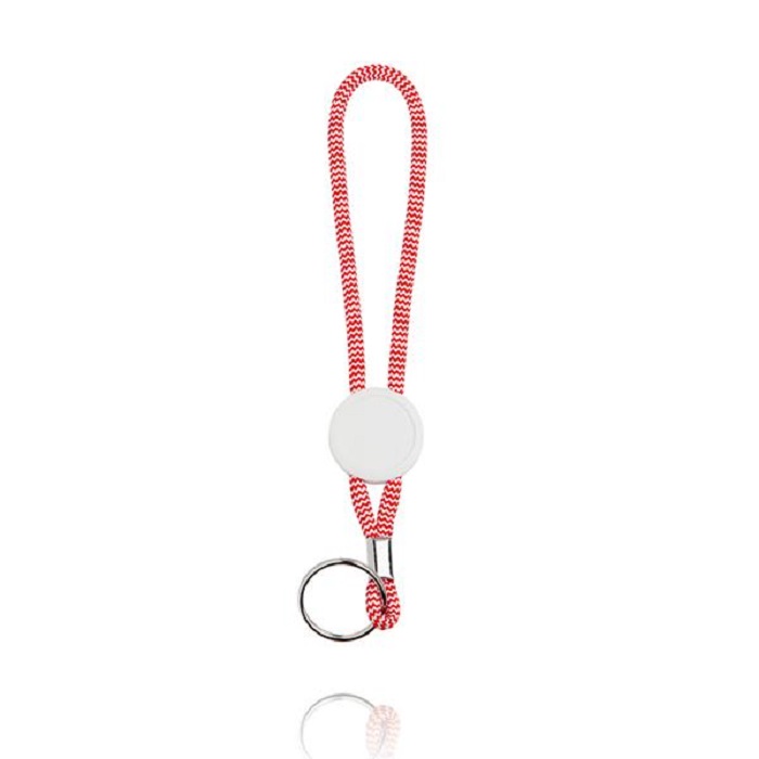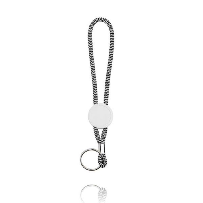 Porta-chaves de alumínio em várias cores metálicas e faixa de poliéster em preto. Especialmente desenhado para gravação a laser.