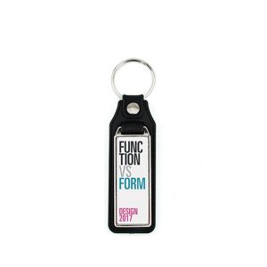 Porta-chaves MD-18 em metal e PU para personalizar, com formato retangular.1 face com inserção de papel com tampa em acrílico.