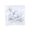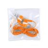 Auriculares de design bicolor. Incluem botões de controle integrados no cabo. Recarregável com cabo micro USB incluído, compatível com iOS/ Android. Apresentados num estojo compacto com mosquetão de fixação em metal.