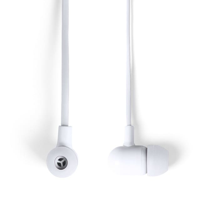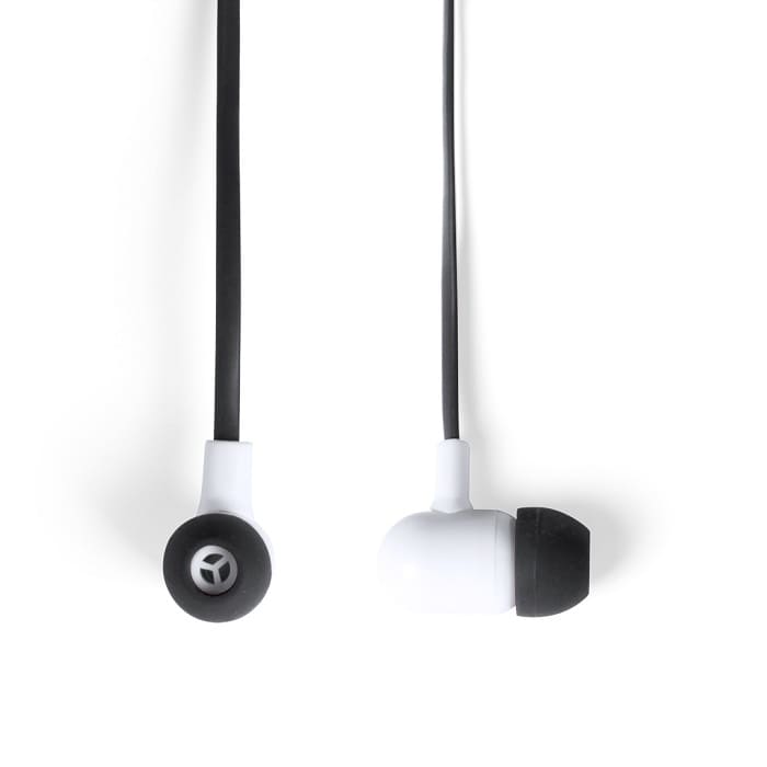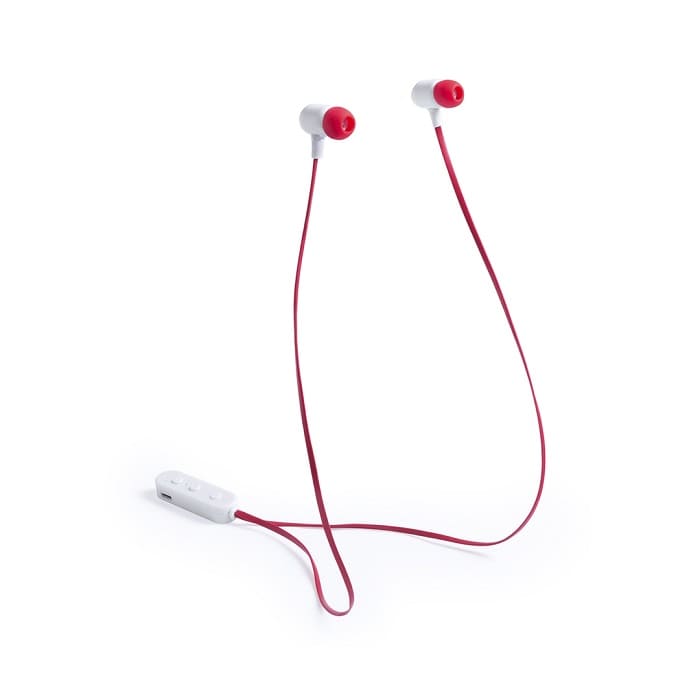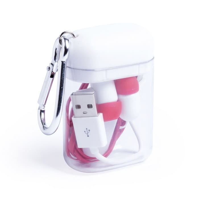 Auriculares de design bicolor. Incluem botões de controle integrados no cabo. Recarregável com cabo micro USB incluído, compatível com iOS/ Android. Apresentados num estojo compacto com mosquetão de fixação em metal.