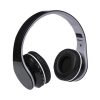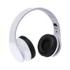 Auriculares dobráveis com conexão bluetooth. Ranhura para cartão Micro SD, rádio FM, entrada de 3,5 mm incluída e recarregável por cabo micro USB – incluído. Protetores em alumínio brilhante com almofadas em PU branco.