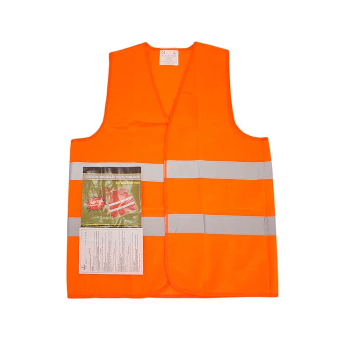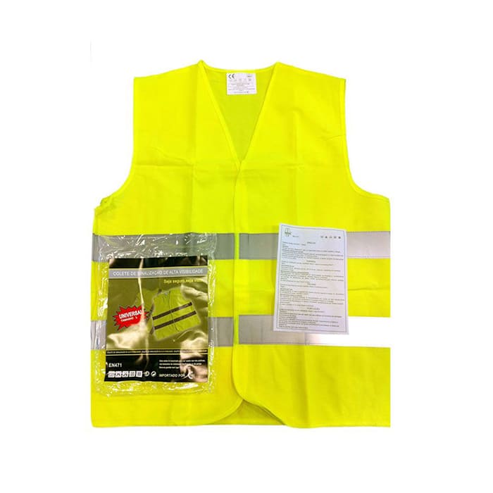 Colete de Alta Visibilidade homologado de classe 2. Com 2 Fitas refletoras horizontais. Aperta por meio de velcro.